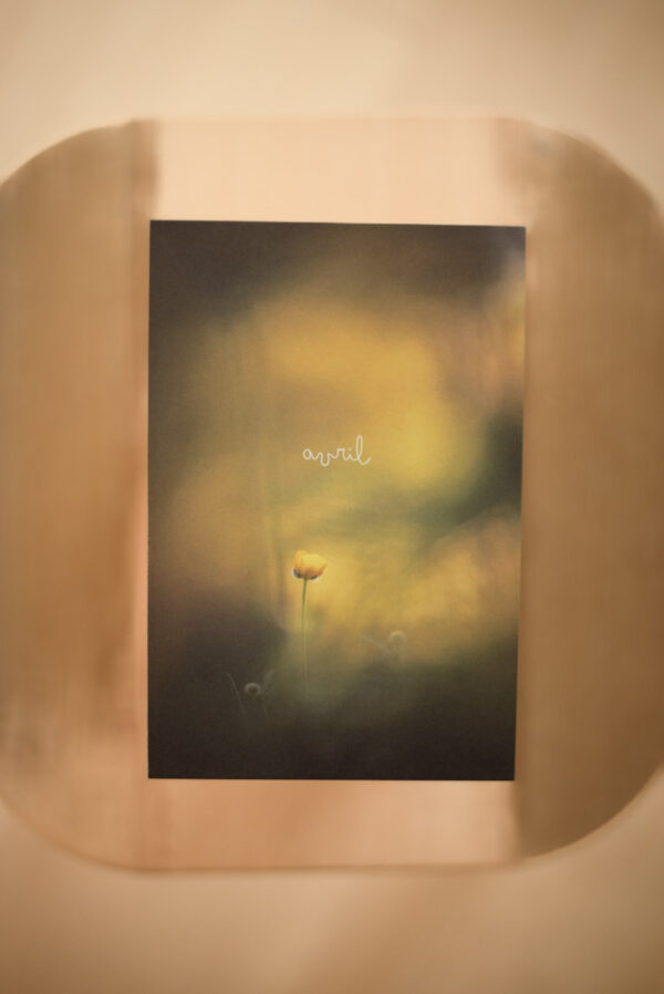 Coffret de 12 photographies imprimées sur papier mat légèrement texturé. Comme un voyage au cours de l’année, chaque photographie offre une pincée du mois auquel elle correspond.